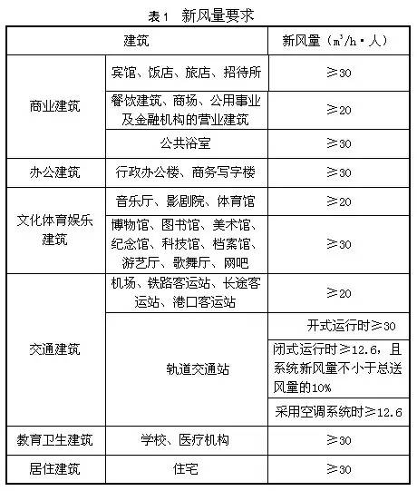 1)新风量应满足表1的要求
