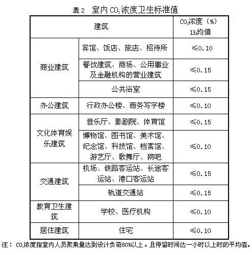 2)室内CO2浓度值应符合表2的要求