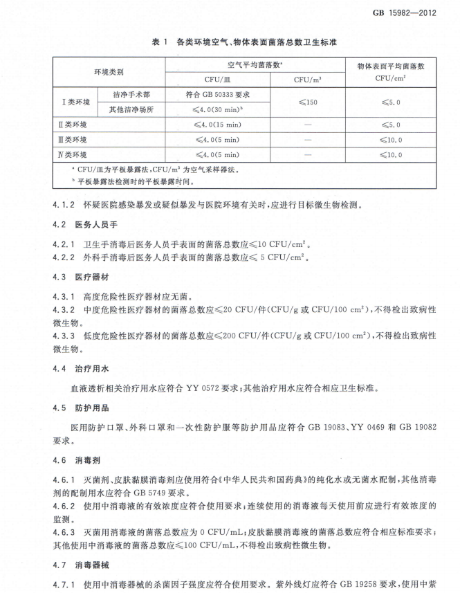 医院消毒卫生标准