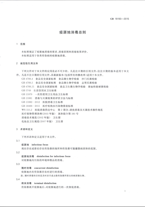 标准:疫源地消毒总则