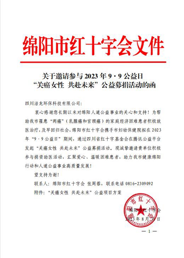 关于邀请参与2023年9.9公益日 “关癌女性 共赴未来”公益募捐活动的函