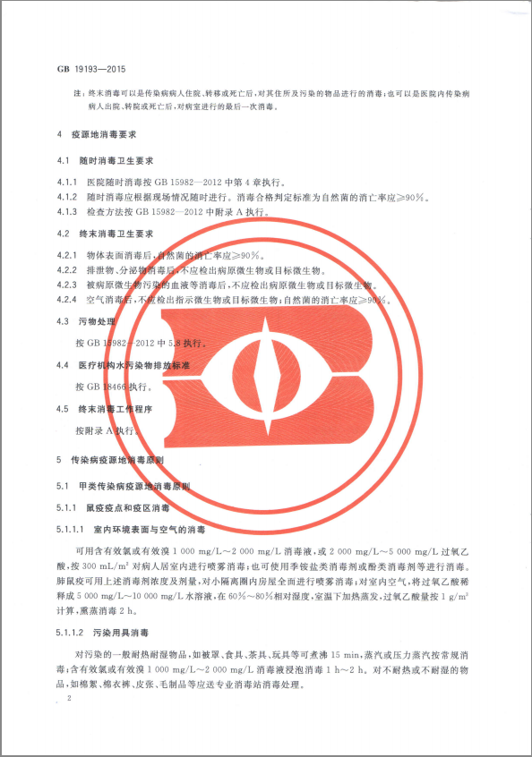 标准:疫源地消毒总则